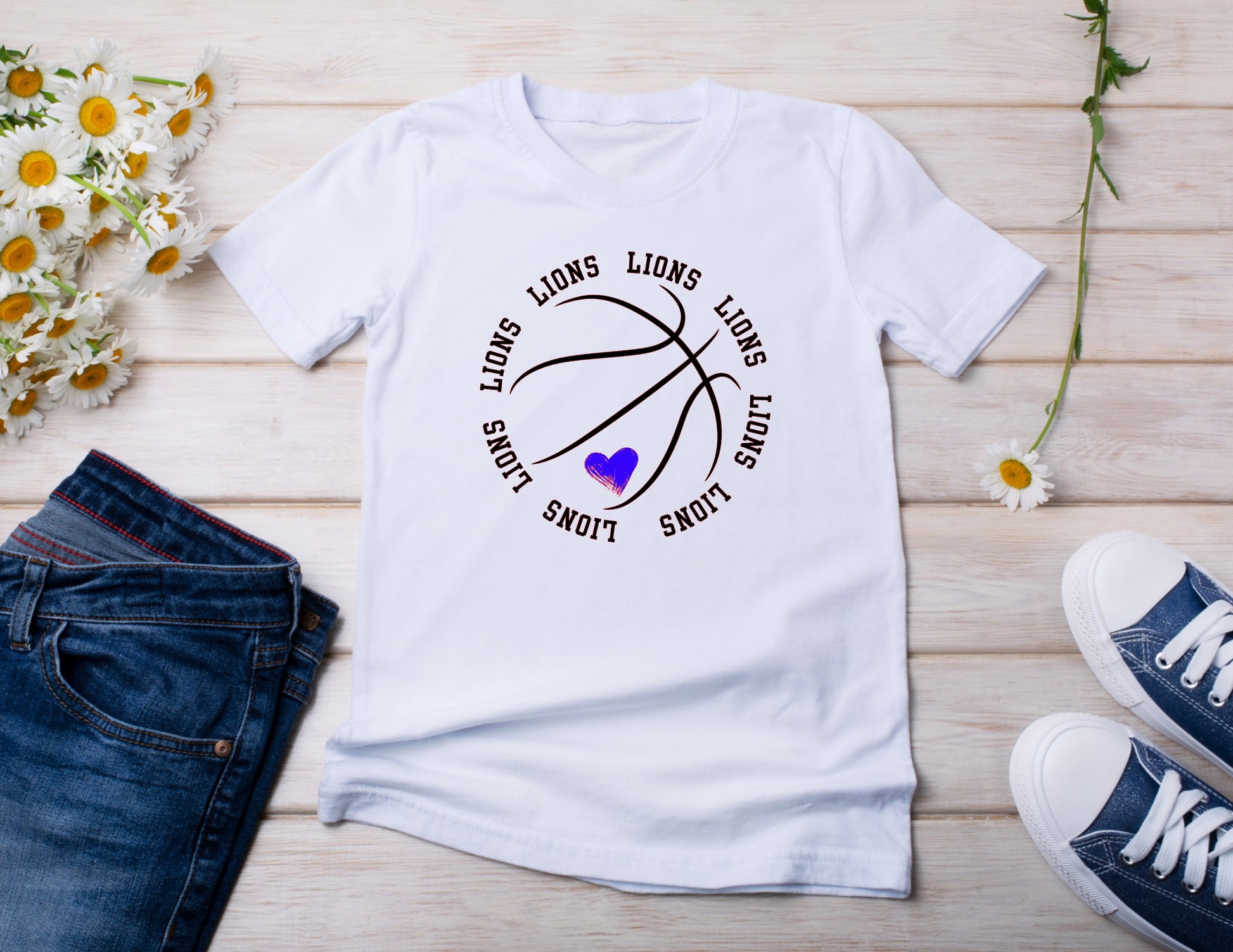 Lions Basketball With Blue Heart